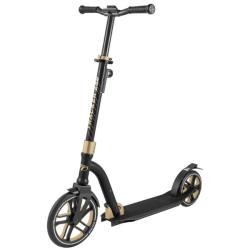 Система складывания выполнена по инновационной и эксклюзивной технологии Easy Hook, позволяющей быстро складывать самокат одним движением. Алюминиевый руль шириной 48 см оснащен специальным зажимом для исключения люфта в местах крепления ручек. Руль фиксируется в четырех положениях - от 94 до 109 см от поверхности. Предусмотрена возможность крепления ремешка для переноски. Фирменные двухцветные колеса - переднее диаметром 250 мм и заднее диаметром 200 мм шириной 30 мм изготовлены из прочной пластмассы, рабочей поверхностью служит полиуретан высотой 22-25 ! мм, что совместно с подшипниками стандарта ABEC 9 дает отличный накат и амортизацию.