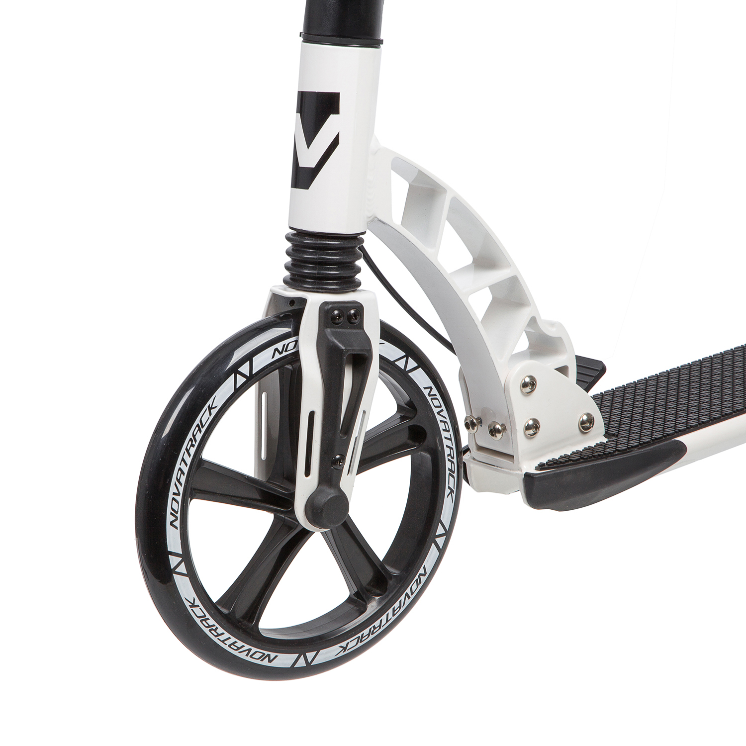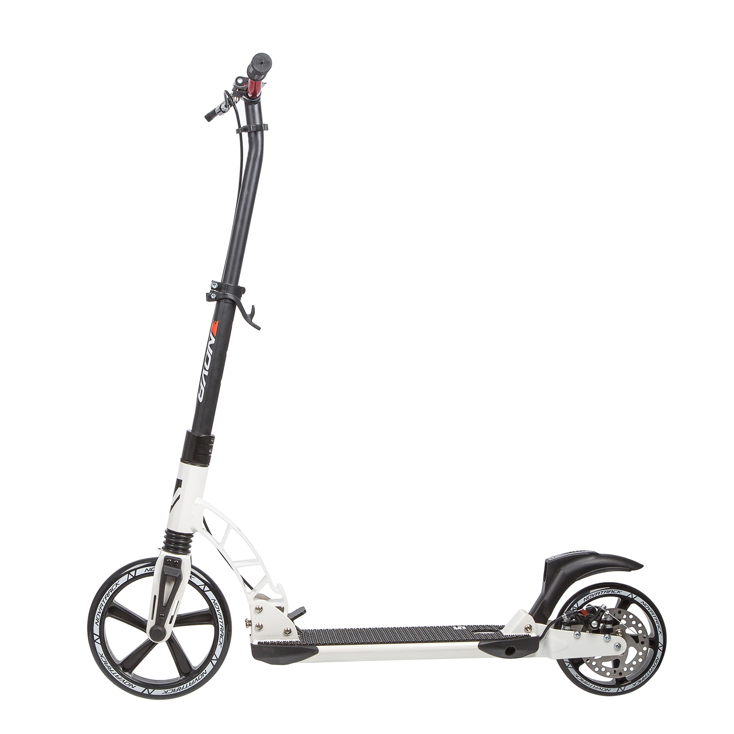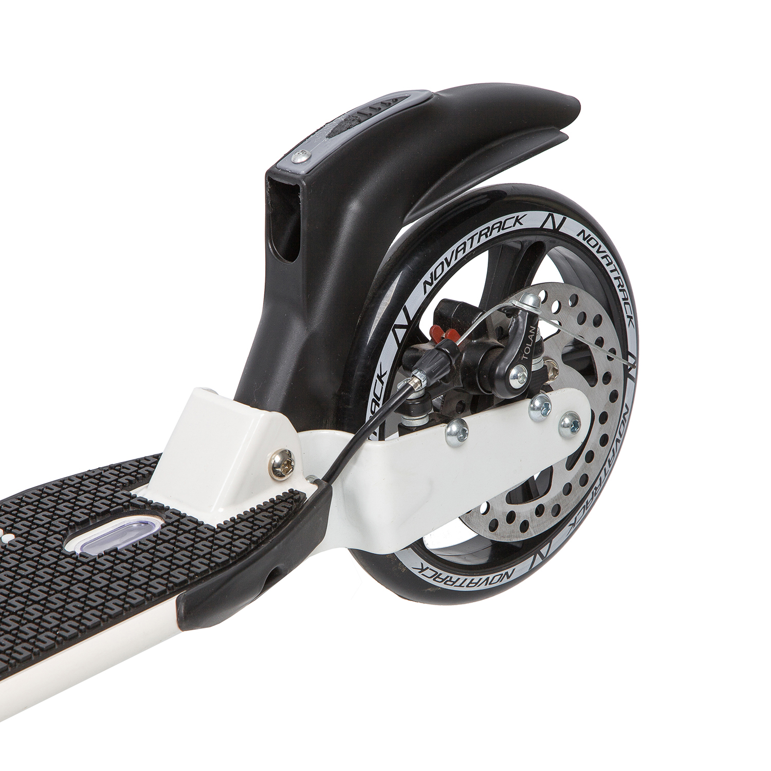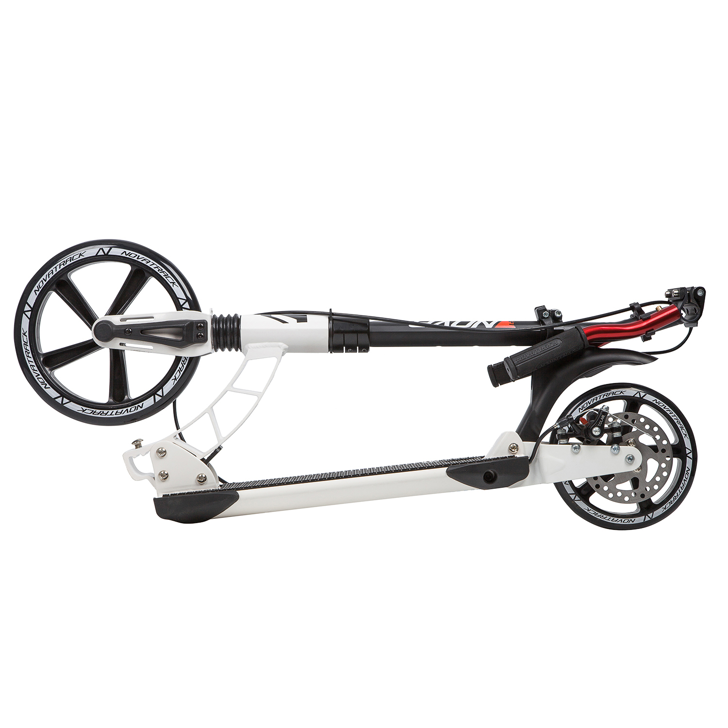 Novatrack Deft 250 PRO Disc - идеальный помощник комфортного перемещения по городу. Модель оснащена большими износостойкими полиуретановыми колесами диаметром 250мм спереди и 180мм сзади. Благодаря большому переднему колесу самокат запросто преодолеет плитку или брусчатку, которой застелены центральные улицы или парковые дорожки. Модель оснащена дисковым тормозом, превосходно работающим при любых погодных условиях.
