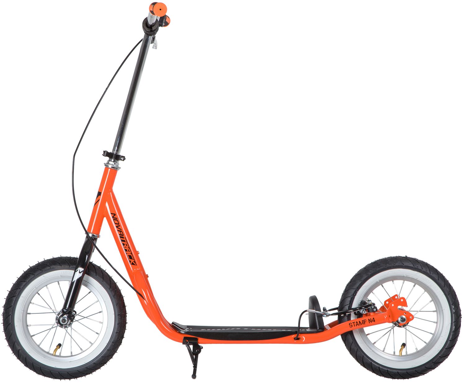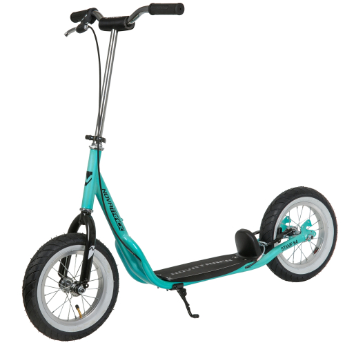 Самокат Novatrack STAMP N4 порадует всех любителей активного образа жизни. Широкие надувные колеса диаметром 12 дюймов позволят кататься не только по асфальтовым дорожкам, но и с легкостью преодолевать парковые тропинки. Надежные передний и задний ручной тормоз обеспечивают безопасное торможение даже с очень крутой горки. Надувные колеса имеют ряд ощутимых преимуществ. Они бесшумны, с мягкими колёсами поездка будет мягче и комфортнее. Хорошо защищают от неровностей благодаря амортизирующим свойствам. Такие колёса комфортны при езде по неровным дорогам. В дождливую погоду надувные колеса увереннее держатся в поворотах. Они отлично тормозят и не скользят на разных поверхностях. Благодаря отличному сцеплению, помогают развивать более высокую скорость.