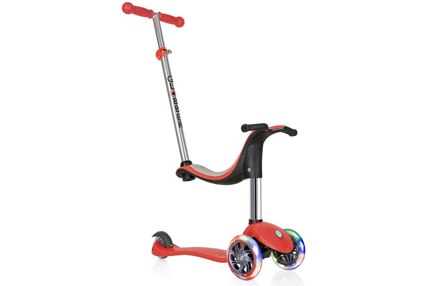 Главная особенность этой модели высокая безопасность ребенка, которая обеспечивается благодаря очень низкой платформе, блокировке руля, усилителю руля и возможности отрегулировать его по высоте. Благодаря специальному сидению, этот самокат можно превратить в беговел для детей примерно от 1 года и 3 месяцев. Благодаря ручке управления, можно без проблем контролируя катать детей от 12 месяцев. Четыре положения, четыре функции в одном продукте Светящиеся обязательно порадуют вашего ребенка своей яркостью и разнообразием цветов.