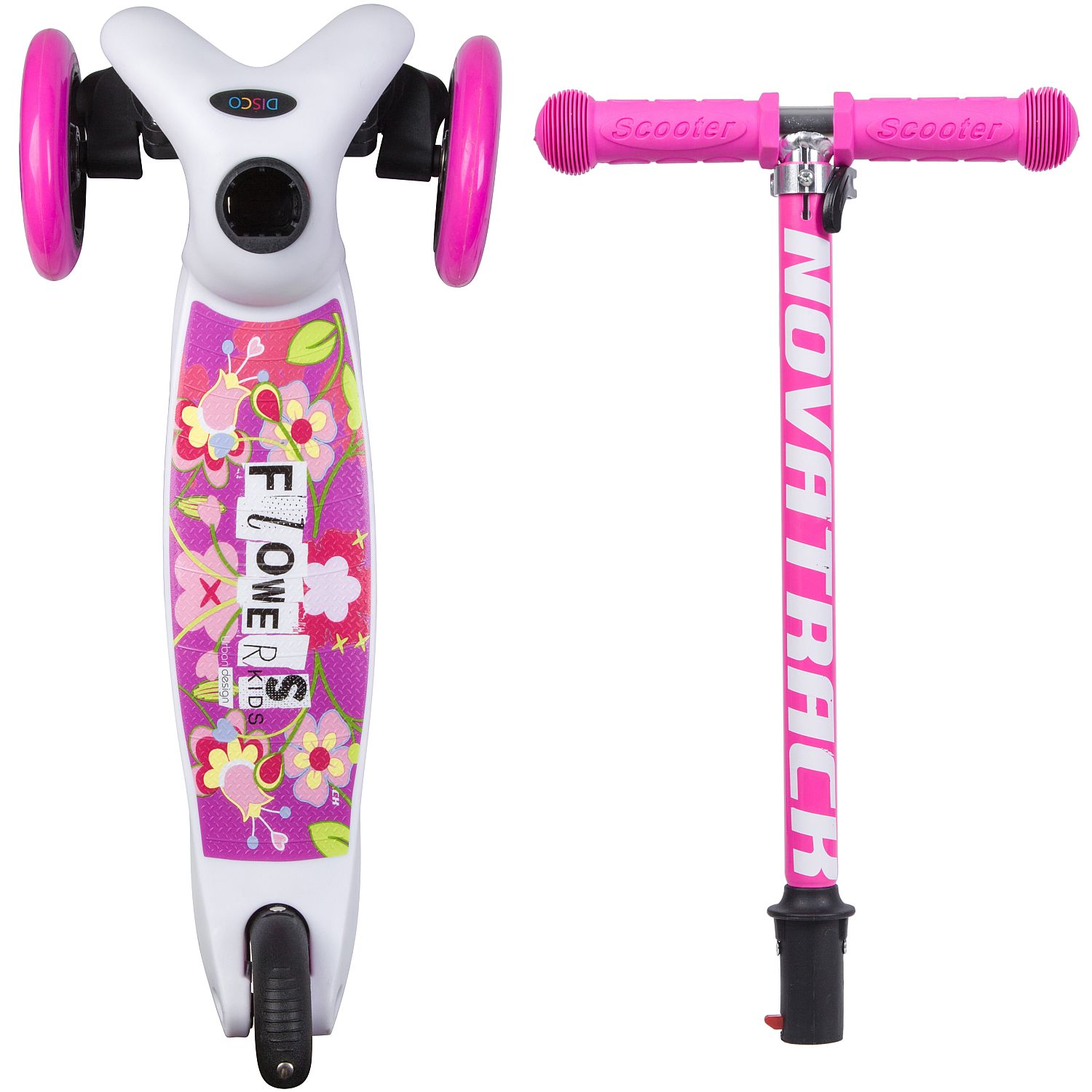 Самокат-кикборд Novatrack Disco-kids Basic (2018), розовый