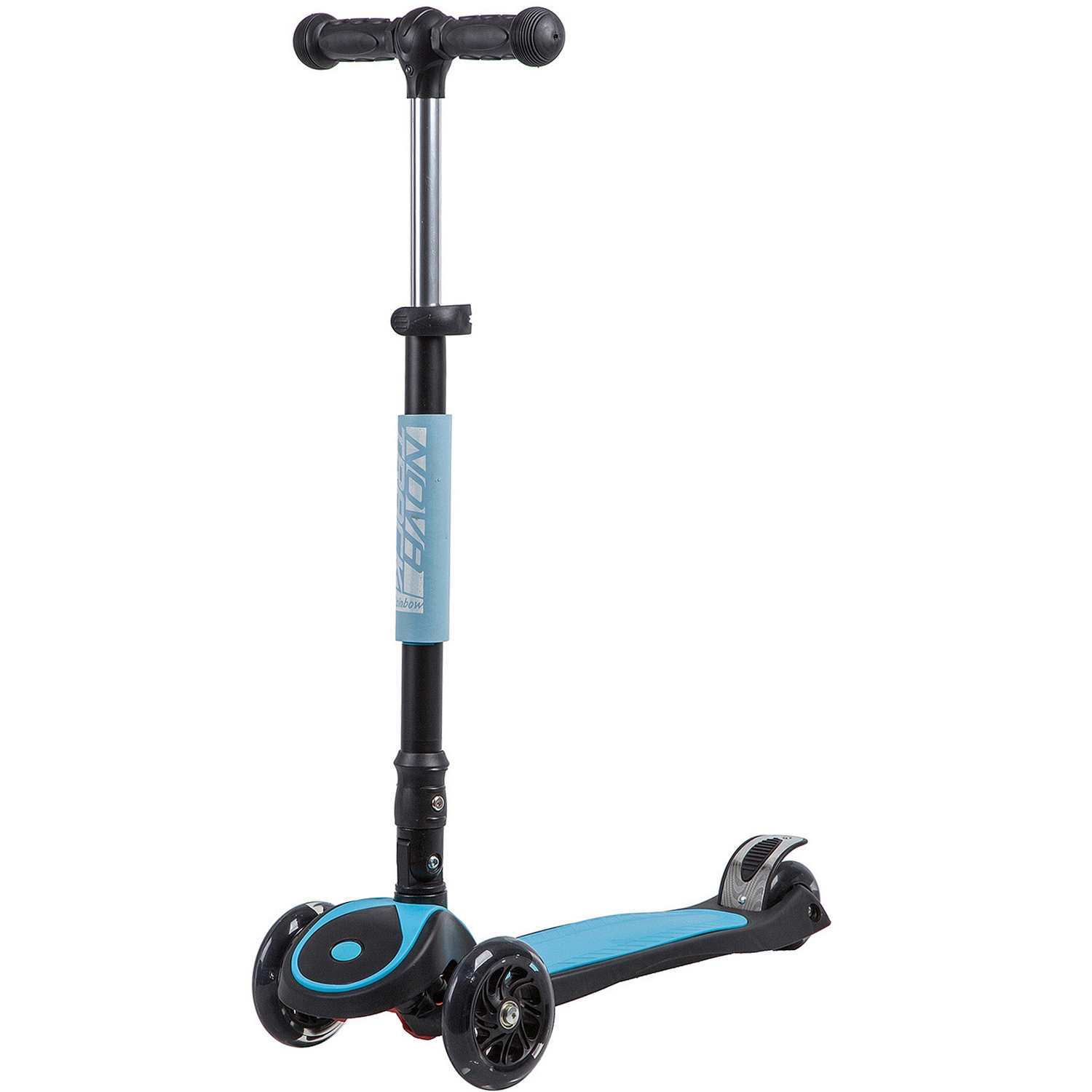 Novatrack RainBow 120C детский трёхколесный самокат-кикборд, предназначенный для детей от 3 лет. Cветящиеся при движении колеса обязательно обрадуют вашего ребенка и сделают его более заметным в темное время суток. Имеется регулировка руля по высоте в трёх положениях. Модель оснащена механизмом с надежным замком, благодаря чему компактно складывается для транспортировки или хранения. Самокат выдерживает до 50 кг.