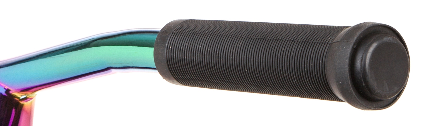 Novatrack REPLAY 110 PRO NEO CHROME PL- сделан из алюминиевого сплава с усиленной рулевой колонкой и полиуретановыми колесами, что делает его максимально прочным и легким. Широкий Т-образный руль позволяет лучше контролировать самокат во время прыжков или других трюков. Модель выдерживает до 100 кг веса.