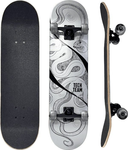 Tech Team Bad Boy 2025 Silver – элегантный и технологичный скейтборд с выразительным серебристым оформлением. Гладкие линии и монохромные детали придают модели современный вид, а прочные материалы делают её универсальной для различных стилей катания. Устойчивость, манёвренность и хорошая скорость делают этот скейт отличным выбором как для начинающих, так и для продвинутых райдеров.