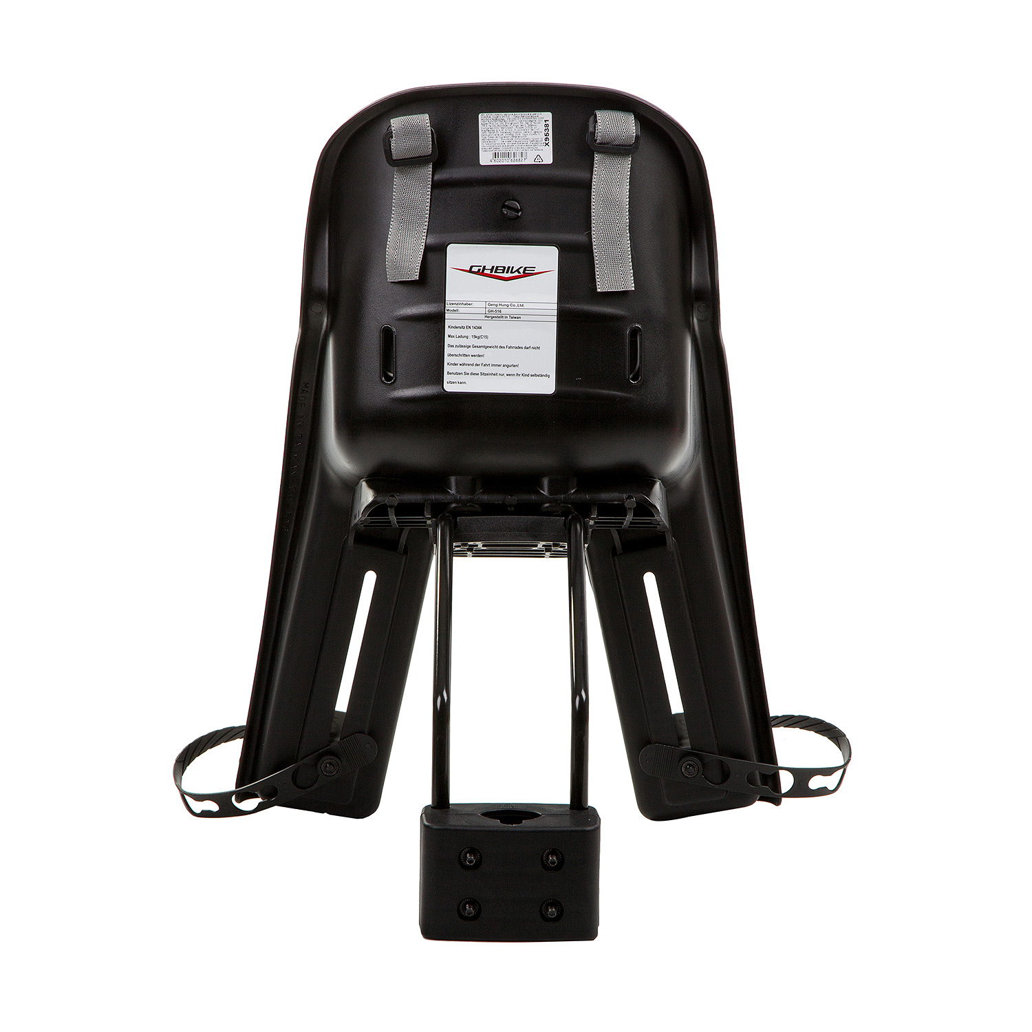 Детское кресло с креплением металлическими дугами на подседельную трубу. Оснащено 3-точечным ремнем безопасности и передней ручкой. Имеет регулировки высоты защитных подставок для ног.Максимальная нагрузка 15 кг.