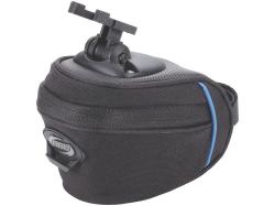 Подседельная сумка с системой крепления Twin-Buckle. Клиновидная форма для хорошей вместительности, сужение в задней части во избежание контакта сумки с ногами. Лёгкий в очистке материал верхней и нижней частей. Резиновая засттёжка молнии предотвращает не