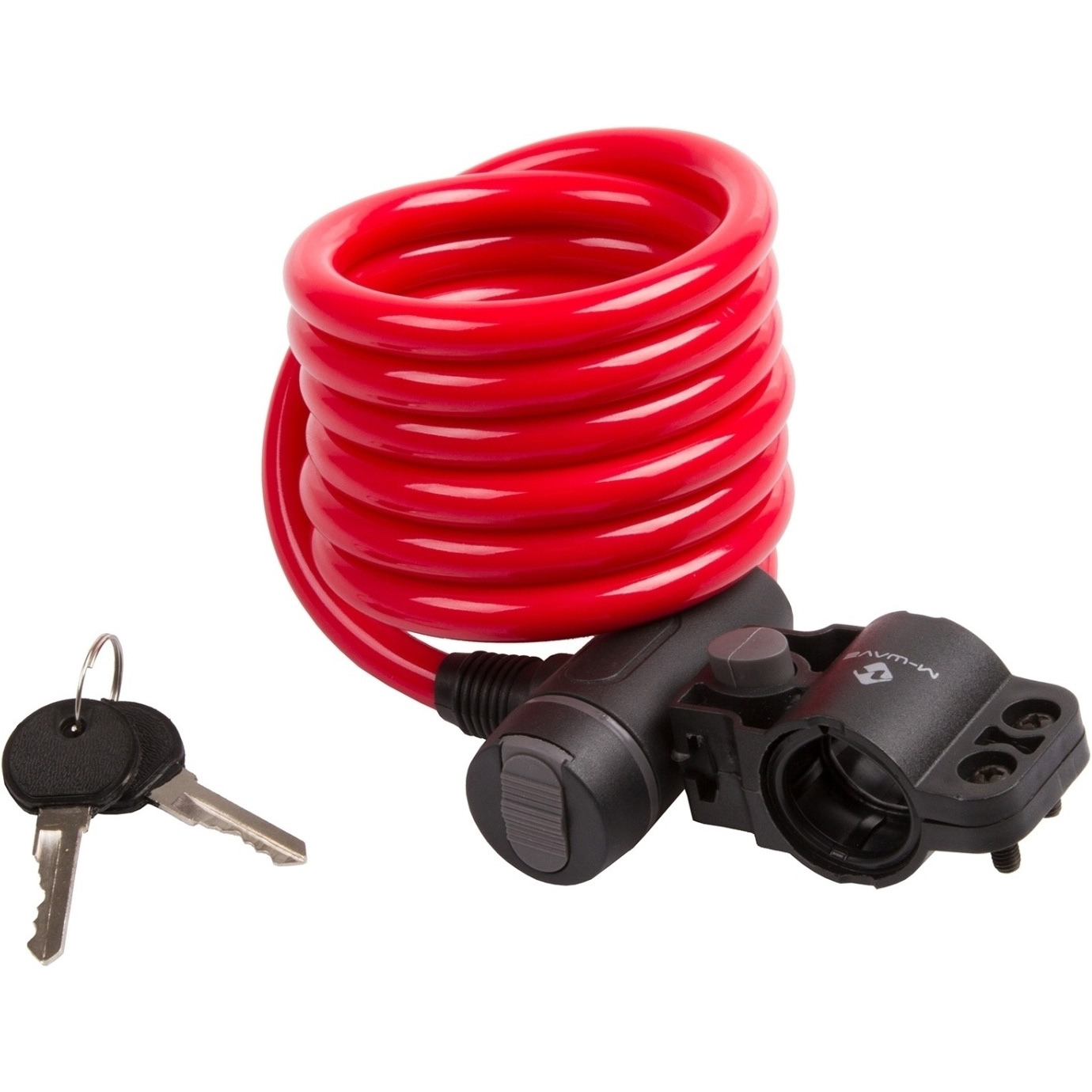 Замок M-Wave тросовый, 10х1800мм, ключ, с защитным колпачком, красный, 5-233863, красный