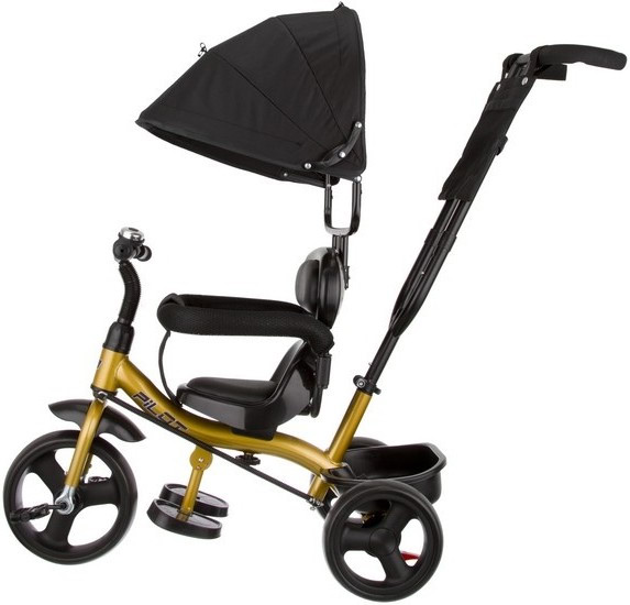 Велосипед трехколесный Pilot PT1, с ручкой управления, черно-золотой