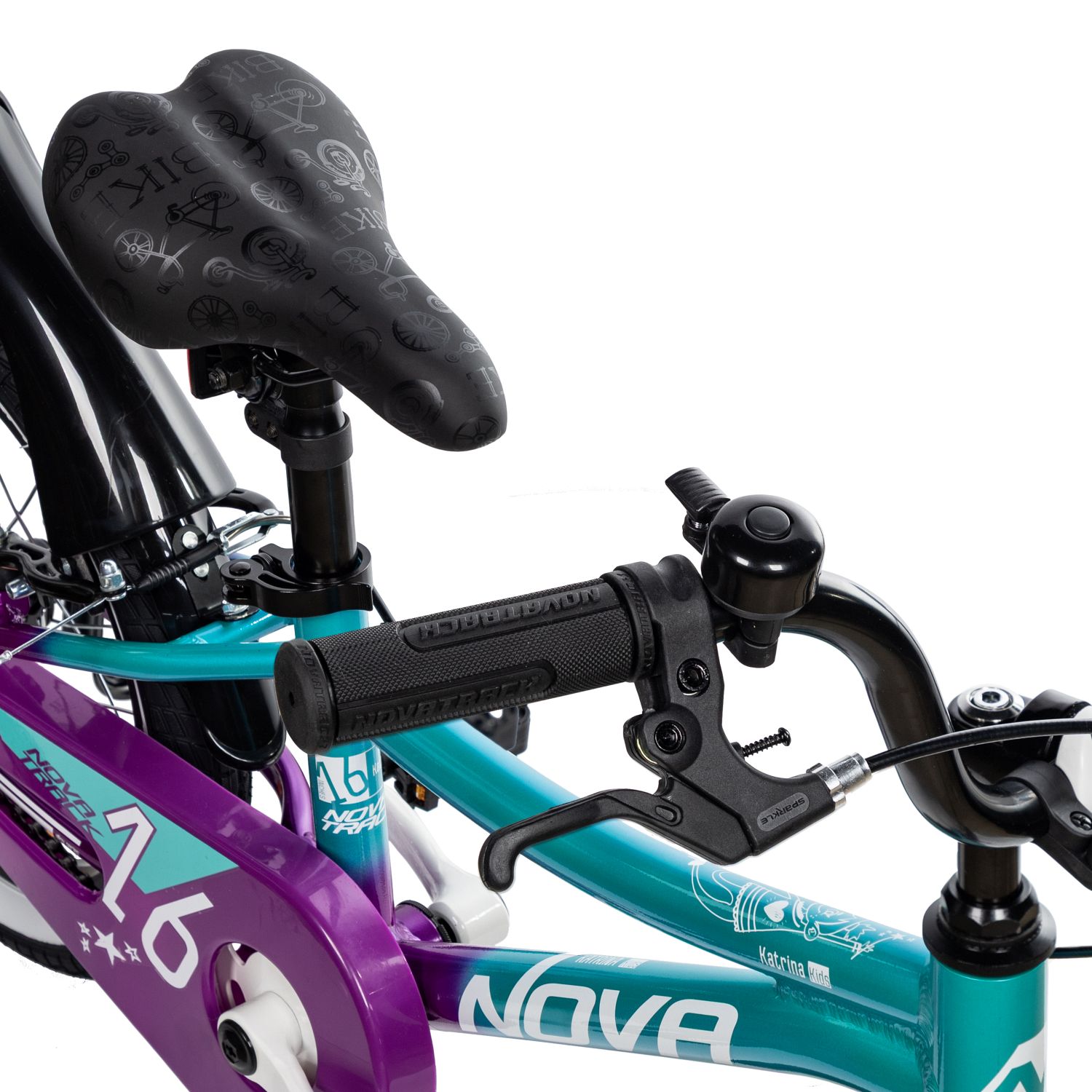 Велосипед Novatrack Katrina V 16 (2025), зеленый-фиолетовый