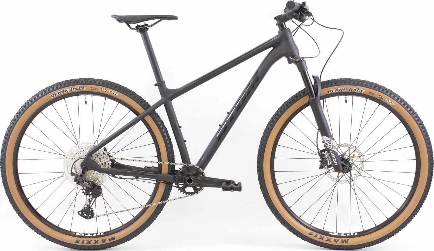 – Легендарные покрышки Maxxis Rekon Race с коричневыми боковинами – быстрая резина для кросс-кантри.