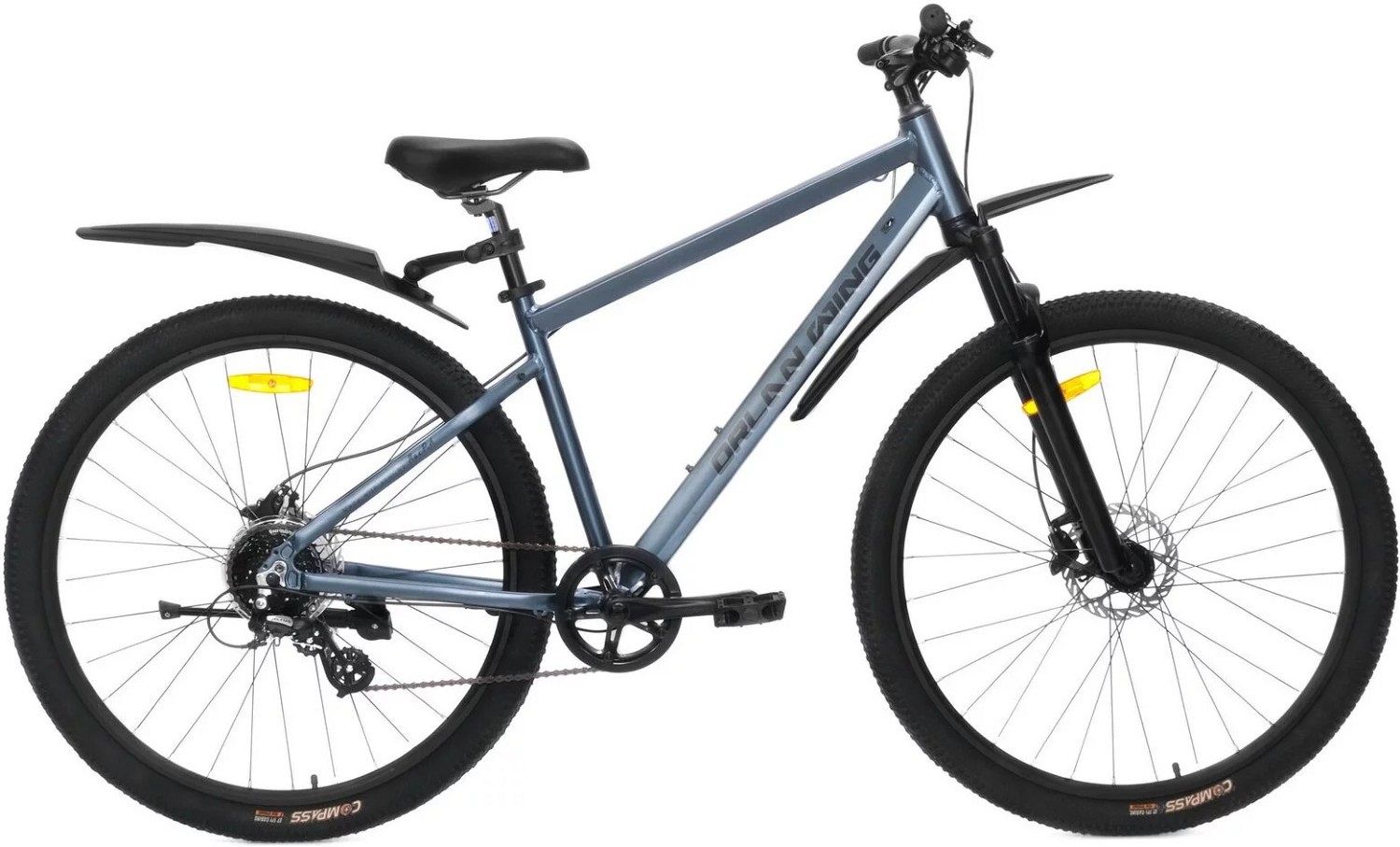 Двойные алюминиевые обода и втулки на промподшипниках гарантируют долговечность и устойчивость колёс, что особенно важно для активных велосипедистов. Дисковые гидравлические тормоза Shimano MT200 работают надёжно и эффективно в любых погодных условиях, повышая безопасность на дороге и позволяя уверенно контролировать скорость. Покрышки Compass 29"х2.125 средней ширины обладают отличным сцеплением с дорогой и хорошим накатом, делая езду более комфортной и стабильной.