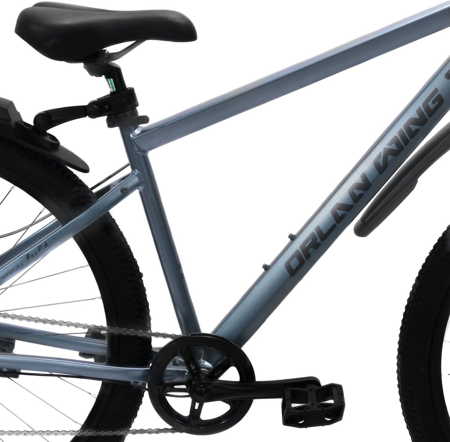 Для удобства использования велосипед оснащён подножкой, что позволяет легко парковать его в любом месте, не беспокоясь о его устойчивости. Крылья защищают от грязи и воды, делая поездки более комфортными в любую погоду и сохраняя велосипед чистым.
