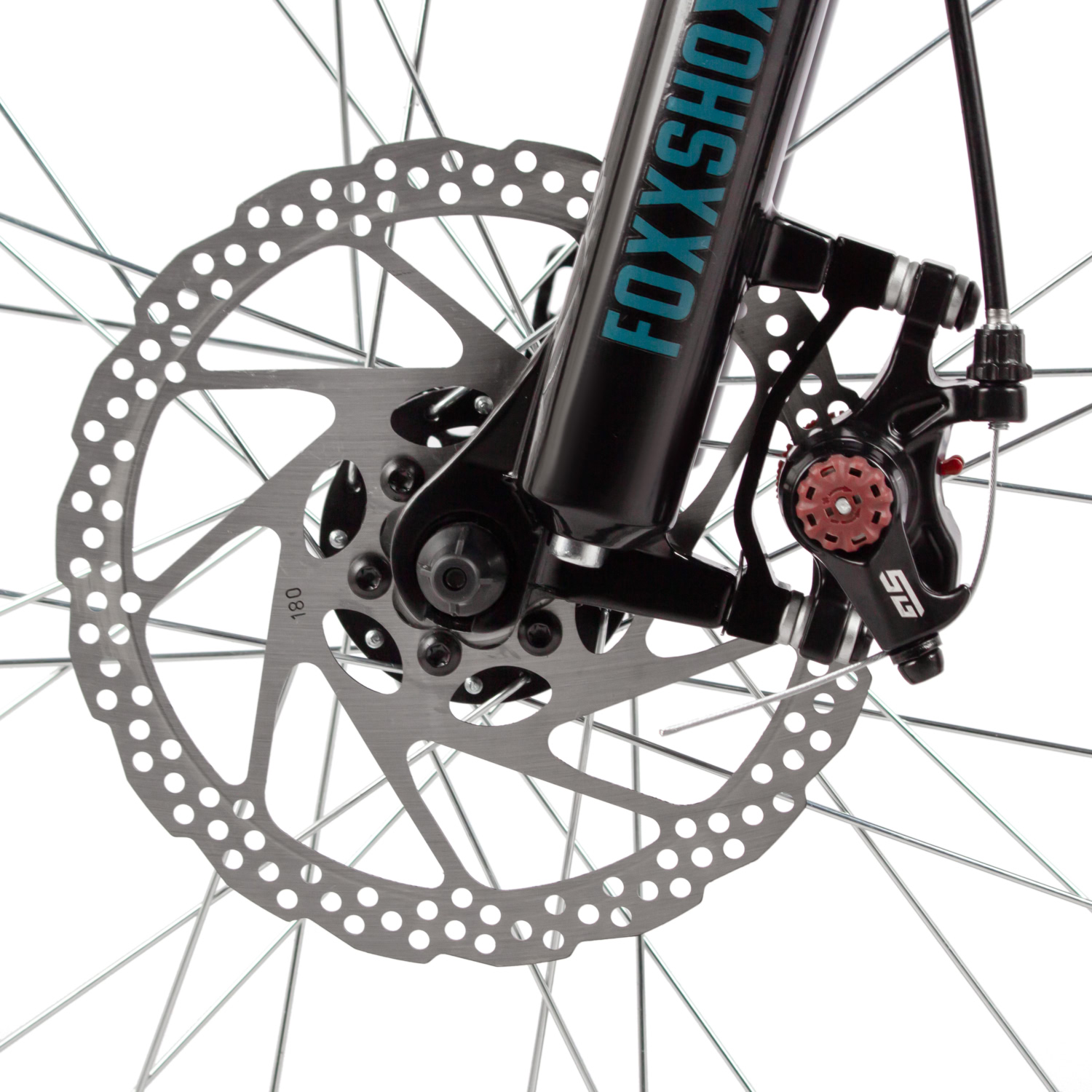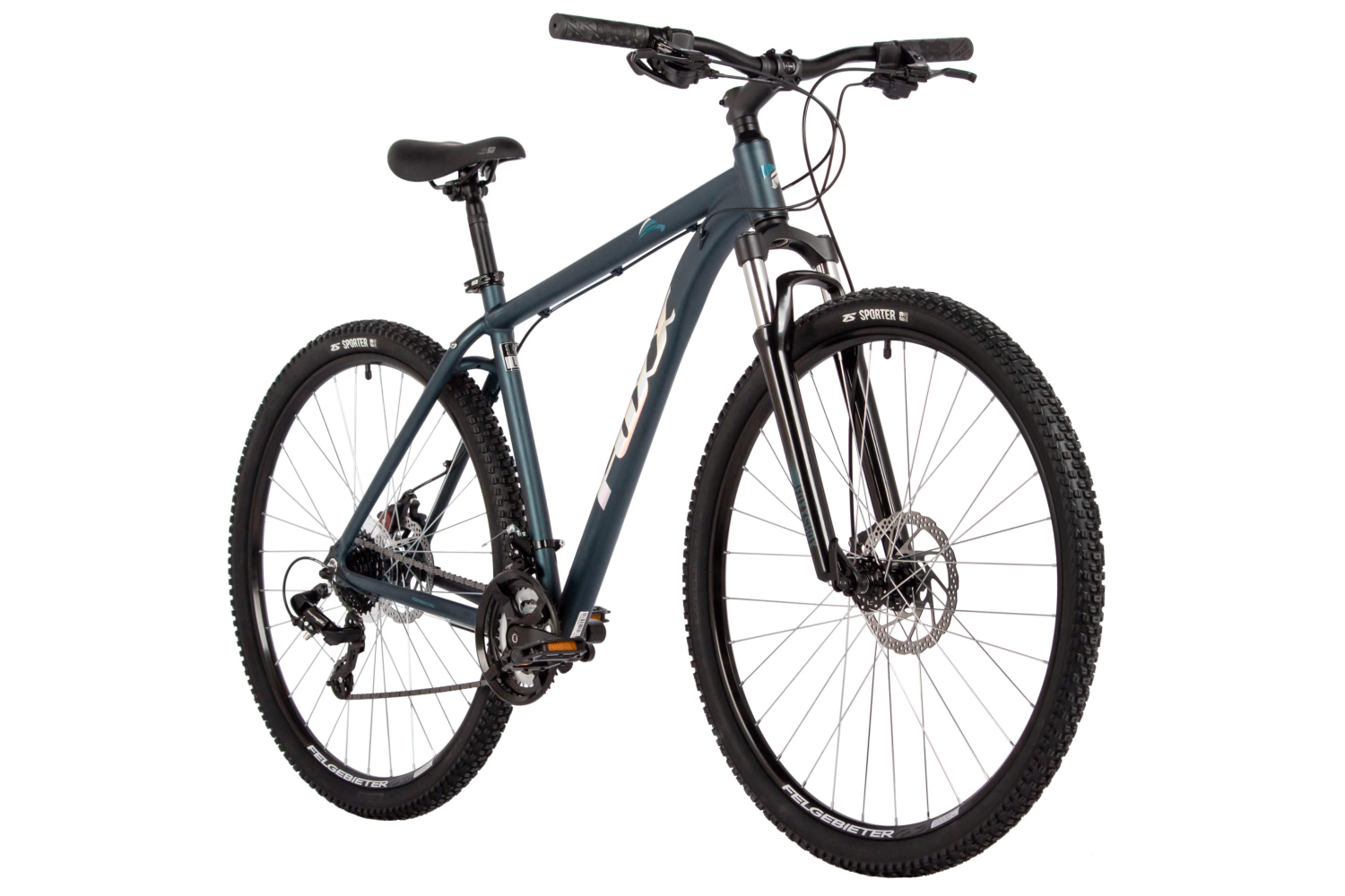 – Пружинная вилка Foxxshox с ходом 100 мм для комфорта на неровностях.
