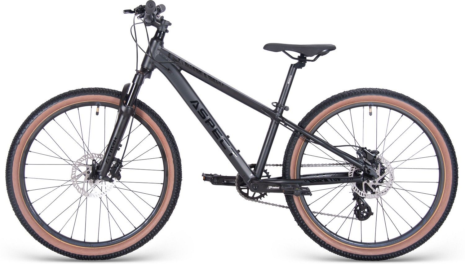 Aspect Air Jr оснащён технологичной алюминиевой рамой ALU 6061 с гидроформированными трубами и внутренней прокладкой кабелей, что придаёт велосипеду современный и аккуратный вид. Пружинно-эластомерная вилка GTMRK 210 MLO с ходом 60 мм обеспечивает плавное преодоление неровностей, делая каждую поездку максимально комфортной.