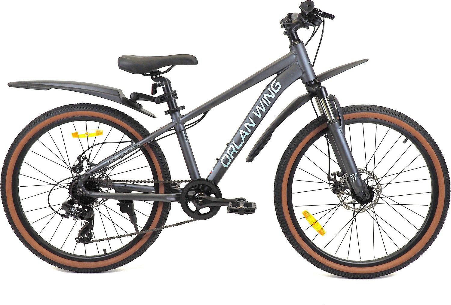 – Покрышки Compass 24"х2.125. Чёрный протектор с коричневой полосой придаёт велосипеду стильный вид.