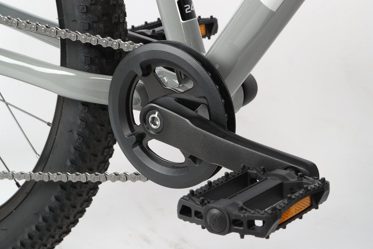 - Широкие покрышки Chao Yang H-5183 размером 24x2.6" отлично держат дорогу на асфальте, грунте или гравии, добавляя устойчивости и комфорта.