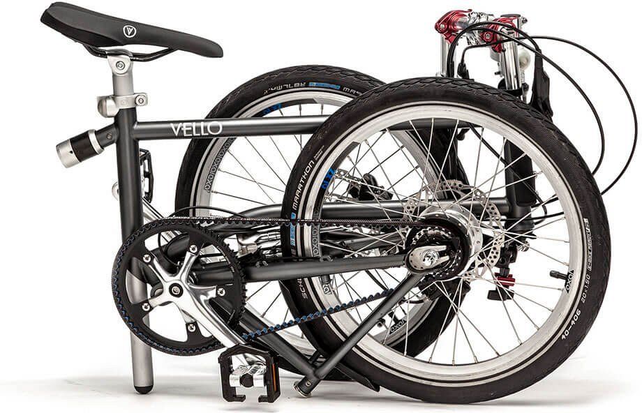 Vello Alfine 11 складывается очень легко и быстро до компактных размеров 57х79x29 см. Запатентованный магнитный складной механизм служит также задним амортизатором, что добавляет комфорта при езде. Этот велосипед идеально подходит для перемещений на любом транспорте, будь то личный автомобиль, метро, самолёт или даже грузовой велосипед. Для частых путешествий предусмотрен специальный мягкий чемодан.