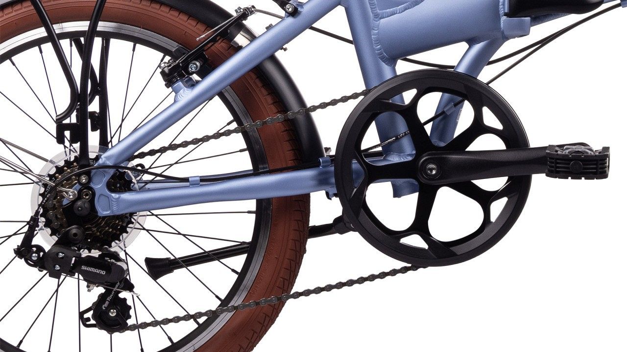 Система с 7 скоростями и задний переключатель Shimano RD-FT35 позволяют легко переключаться между различными режимами передвижения, обеспечивая оптимальную скорость и эффективность в городской среде. Ободные тормоза V-brake Tektro дают надежное и точное торможение, даря вам полный контроль над скоростью и безопасностью. Обода Alloy Double Wall и покрышки Wanda P1023 20x1.95 обеспечивают отличное сцепление с дорогой и комфортное катание даже на неровных поверхностях. Благодаря возможности складывания, вы сможете легко брать велосипед с собой в поездки и хранить его в ограниченном пространстве.