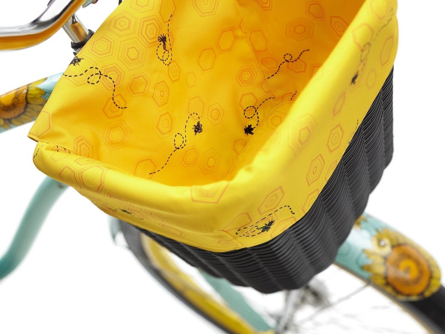 Градиентная окраска рамы, украшенная яркими подсолнухами, создает ощущение тепла и радости. Принт в виде сот, по которым перемещаются пчелы, поддерживает общий ритм и стилистику модели, создавая приятное ощущение гармонии жизни. Смелые желтые диски, кастомное седло и стилизованные грипсы дополняют красоту и уникальность этого велосипеда.