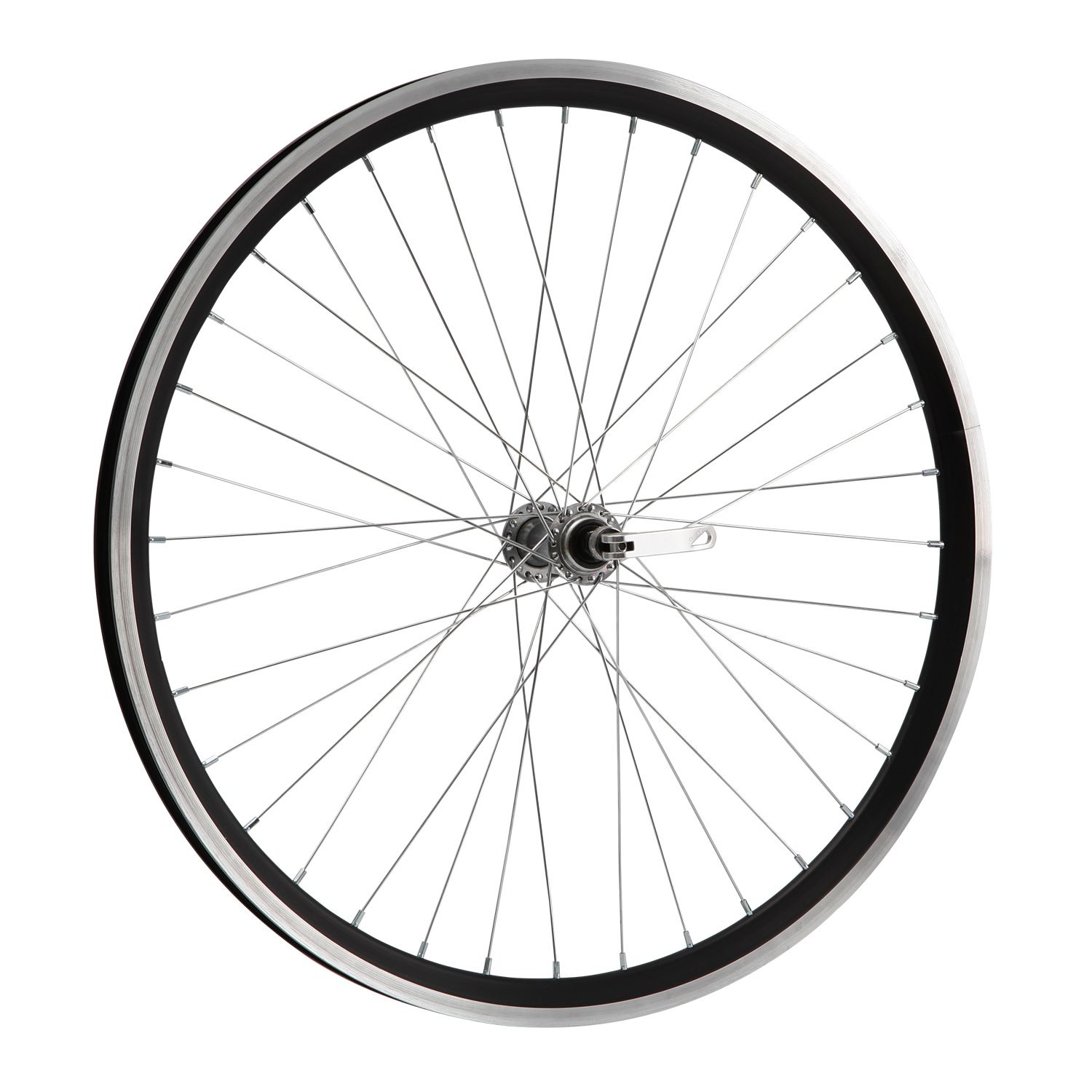 Колесо 26" переднее в сборе(без резины) с двойным алюминиевым ободом на 36 спиц со втулкой под дисковый тормоз.