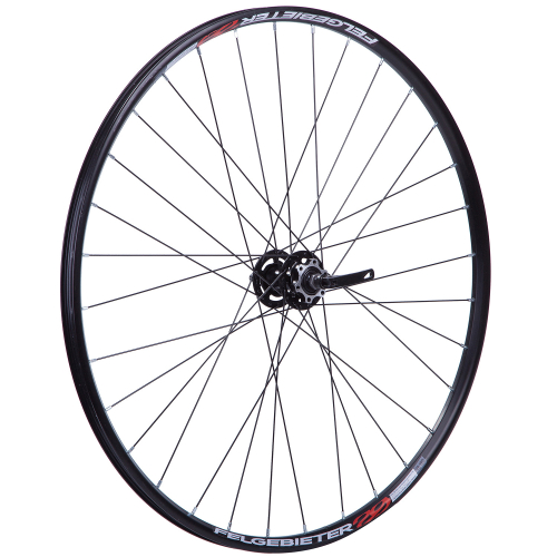 Колесо переднее 29 дюймов. Двойной алюминиевый обод из сплава под 32 спицы. Алюминиевая втулка на эксцентрике с промышленными подшипниками.