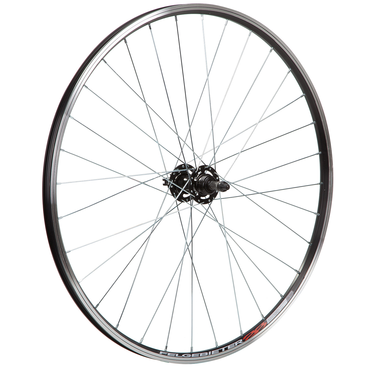 Заднее колесо 28 дюймов с двойным алюминиевым ободом на 32 спицы. Стальная втулка с насыпными подшипниками под трещотку и креплением на эксцентрик.