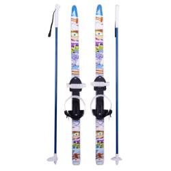 Комплект также включает палки длиной 90 см, которые помогают ребёнку сохранять равновесие и улучшать координацию движений. Палки обладают прочной и лёгкой конструкцией с пластиковыми травмобезопасными наконечниками, что особенно важно для безопасности маленьких лыжников.