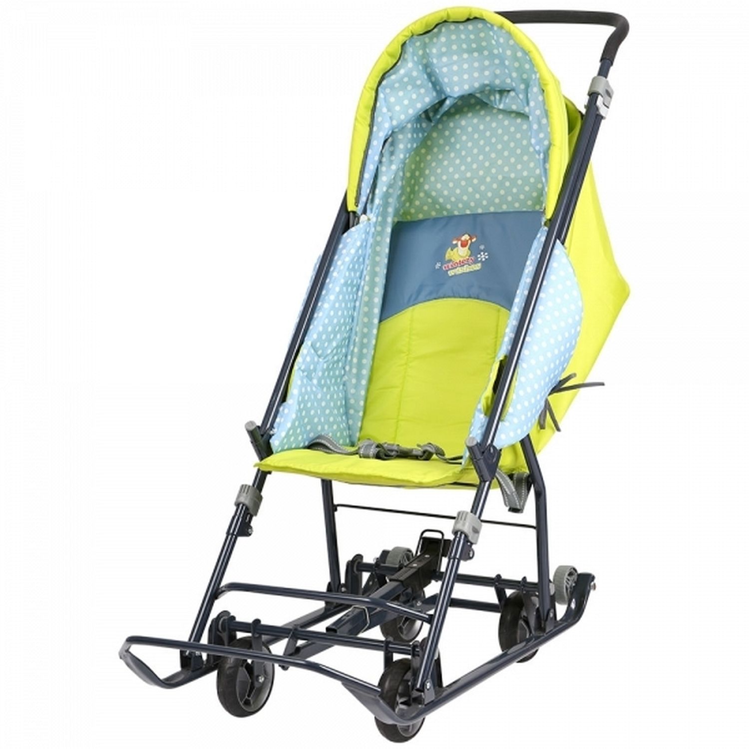 Детские санки-коляска Nika Disney-baby 1 Тигруля позволяют передвигаться по любой дороге. Нажатием ноги на педаль опускаются колеса, и вы можете везти коляску по асфальту или по гладкому полу. Еще одно нажатие — коляска трансформируется в санки и снова скользить по снегу!