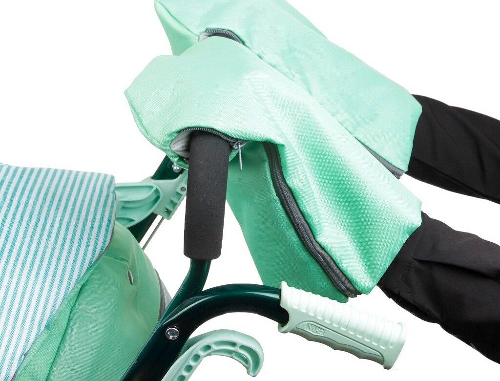 Чехол для ног с двумя молниями позволяет легко открывать его с обеих сторон, а смотровое окошко даёт возможность наблюдать за ребёнком. Яркий рисунок на чехле добавляет коляске привлекательности. В комплекте также идут рукавички для мамы, трёхточечный ремень безопасности и обрезиненные колеса на полозьях для удобной транспортировки.