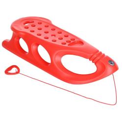 Сделаны из полого, прочного, морозостойкого пластика, с ребрами жесткости. Снизу расположены металлические полозья, которые улучшают скольжение и защищают санки от повреждений.