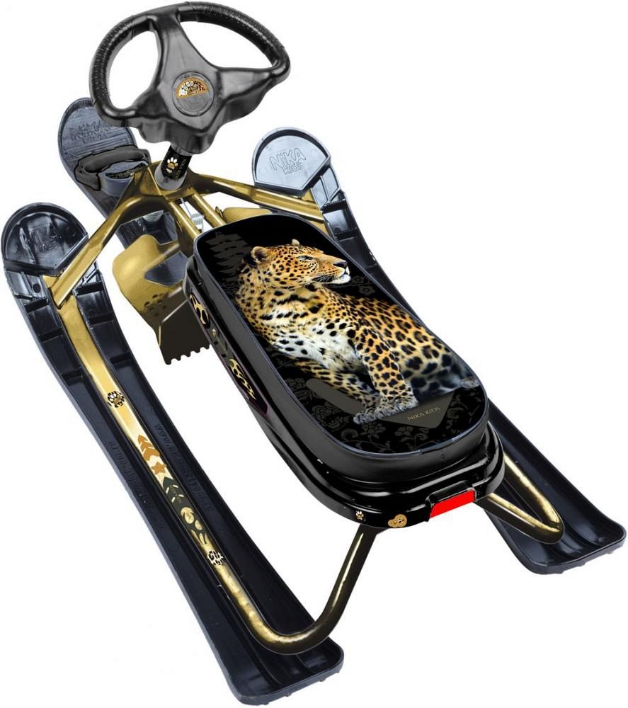 Снегокат Ника-кросс СНК/Л2 с леопардом, золотистый каркас, черный
