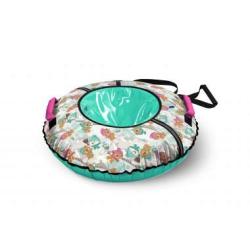 Тюбинг с ярким принтом изготовлен из прочного тента, который устойчив к морозам до 28 градусов, все швы усилены капроновой лентой.